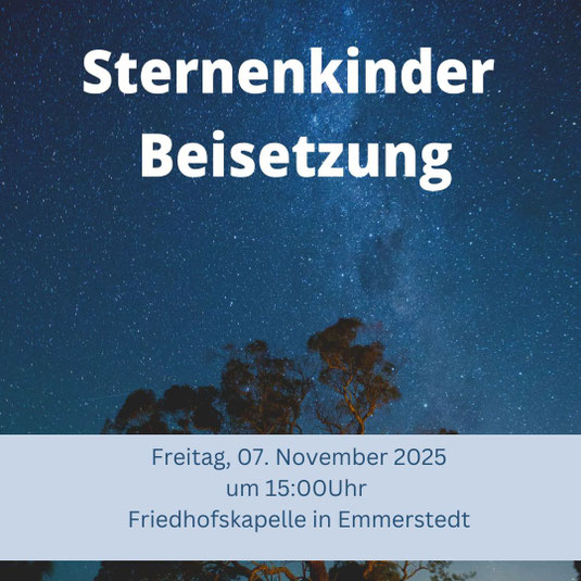 „Wohin mit der Trauer um unser Sternenkind?“ - so fragen sich manche Eltern, Großeltern und Geschwister. „Sternenkinder“, so werden Kinder genannt, die in einer frühen Phase der Schwangerschaft mit einem Gewicht von unter 500g verstorben sind. Von einem solchen Verlust sind viele Familien betroffen: Etwa jede dritte Frau erleidet mindestens einmal vor der zwölften Schwangerschaftswoche eine Fehlgeburt. Sternenkinder dürfen auf einem eigenen Grab bestattet werden. Eine gesetzliche Pflicht zur Bestattung gibt es aber nicht. Seit 2014 bietet die Stadt Helmstedt, angeregt und unterstützt durch verschiedene Partner darum auf dem Friedhof in Emmerstedt eine eigene Grabanlage für Sternenkinder an.
